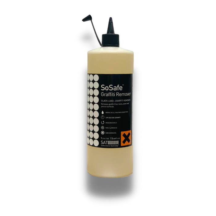 SoSafe Black label graffiti remover is the most advanced graffiti removal technology ever released by and graffiti removal chemical manufacturer, suitable for removal of graffiti from non-sensitive surfaces.