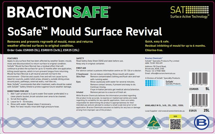 SoSafe Surface Revival has a residual effect that will continue to protect the surface for up to 12 months after one application, killing mould spores, which in turn prevents fungus from returning.