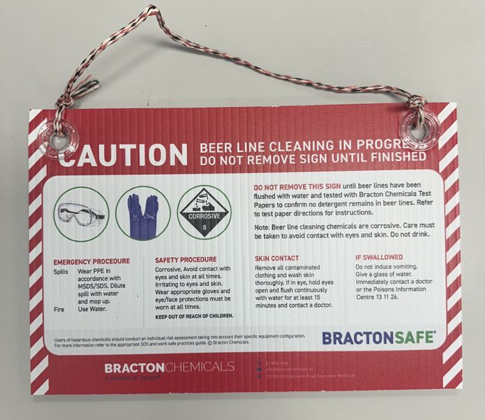 Beer Line Cleaning In Progress Sign 27cm x 18cm BRACTONSAFE