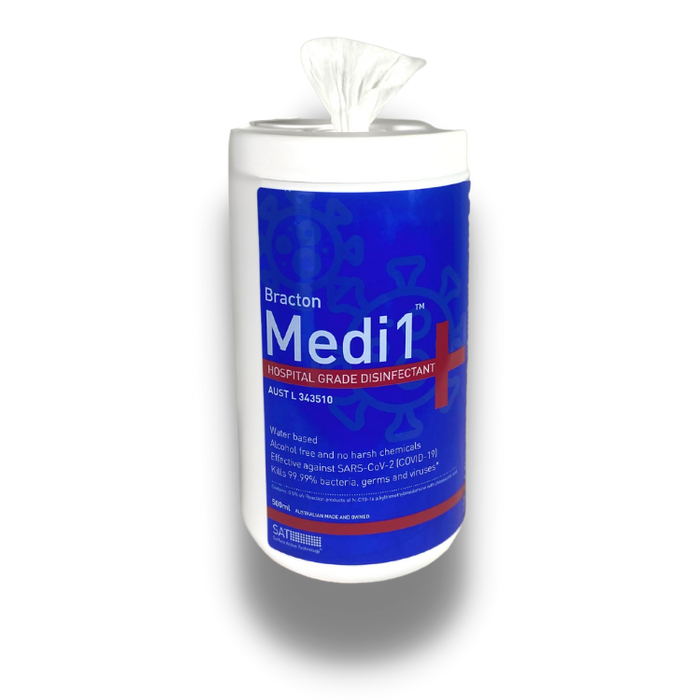 Bracton Chemicals Medi1 can help: - Kills 99.99% of viruses and 99.9999% of bacteria - 30 second kill rate SARS-COV_2 ( TGA ARTG ASTL343510 ). - Water based, no alcohol, no peroxide, no harmful ingredients - meets Boeing BSS7434 and Airbus AMS1452 standards for use - Safe for food service and food preparation areas.